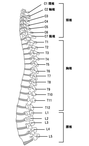 人間の背骨を横から見ると、頚椎(首の骨)が前に湾曲し、胸椎(背中の上部の骨)が後ろに湾曲し、腰椎(背中の下部の骨)が前に湾曲するというS字を組み合わせたような波型になっています。