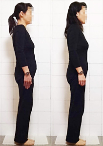 画像の左のように、胸を張ることを意識しすぎると体が反り返ってしまい、逆に首が前に出る姿勢になってしまいます。