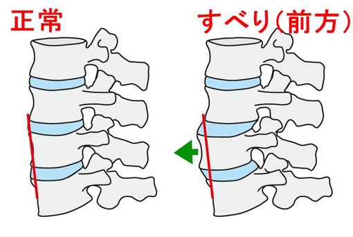 『変形すべり症』は更年期過ぎた女性に多く見られ、『分離すべり症』はスポーツなどで分離症になった人の一部に見られます。どちらも同じような症状になります。