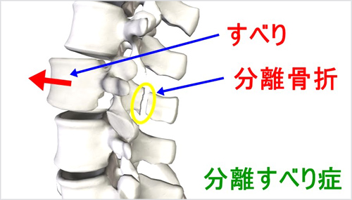 分離症が進行するとすべり症になりますが、誰でもなるわけではなく、体に激しい衝撃を与えるスポーツを続けていたり、常に姿勢が悪い人の中から併発していると思われます。